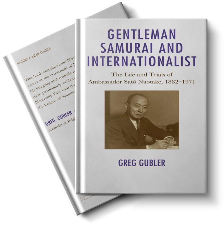 Greg Gubler, Gentleman Samurai and Internationalist: The Life and Trials of Ambassador Naotake Sato (1882-1971) Rowan & Littlefield, Lexington Imprint (2021), 476 pages with index and extensive bibliography. Available in hardback, paperback and e-book through Amazon, Barnes & Nobles, and through most bookstores.